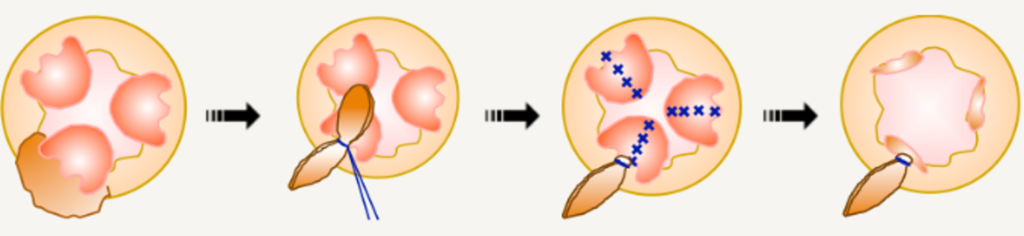 - 内側の痔核(内痔核): ジオン注射で痛みなく固める。
